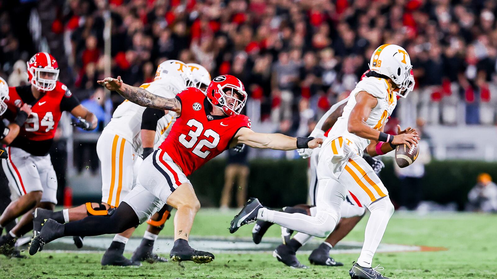 241116 - Tennessee vs. Georgia Georgia outside linebacker Chaz Chambliss (32) during Georgia’s game against Tennessee on Dooley Field at Sanford Stadium in Athens, Ga., on Saturday, Nov. 16, 2024. (Tony Walsh/UGAAA) (Tony Walsh/Tony Walsh/UGAAA)