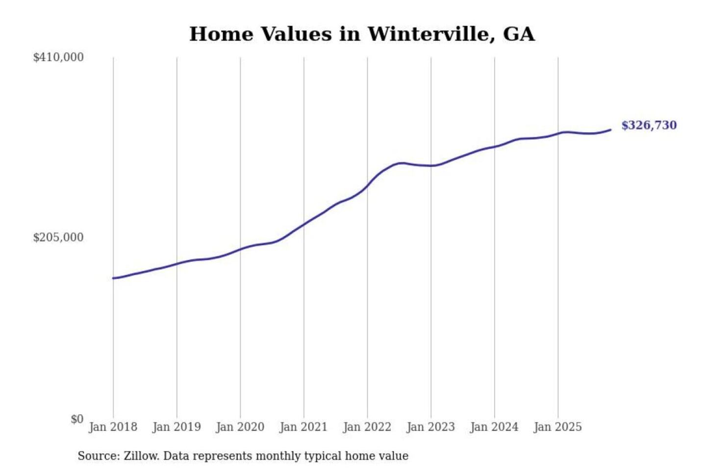 Stacker compiled a list of cities with the most expensive homes in the Athens-Clarke County, GA metro area using data from Zillow. Charts show the monthly typical home value since January 2018.