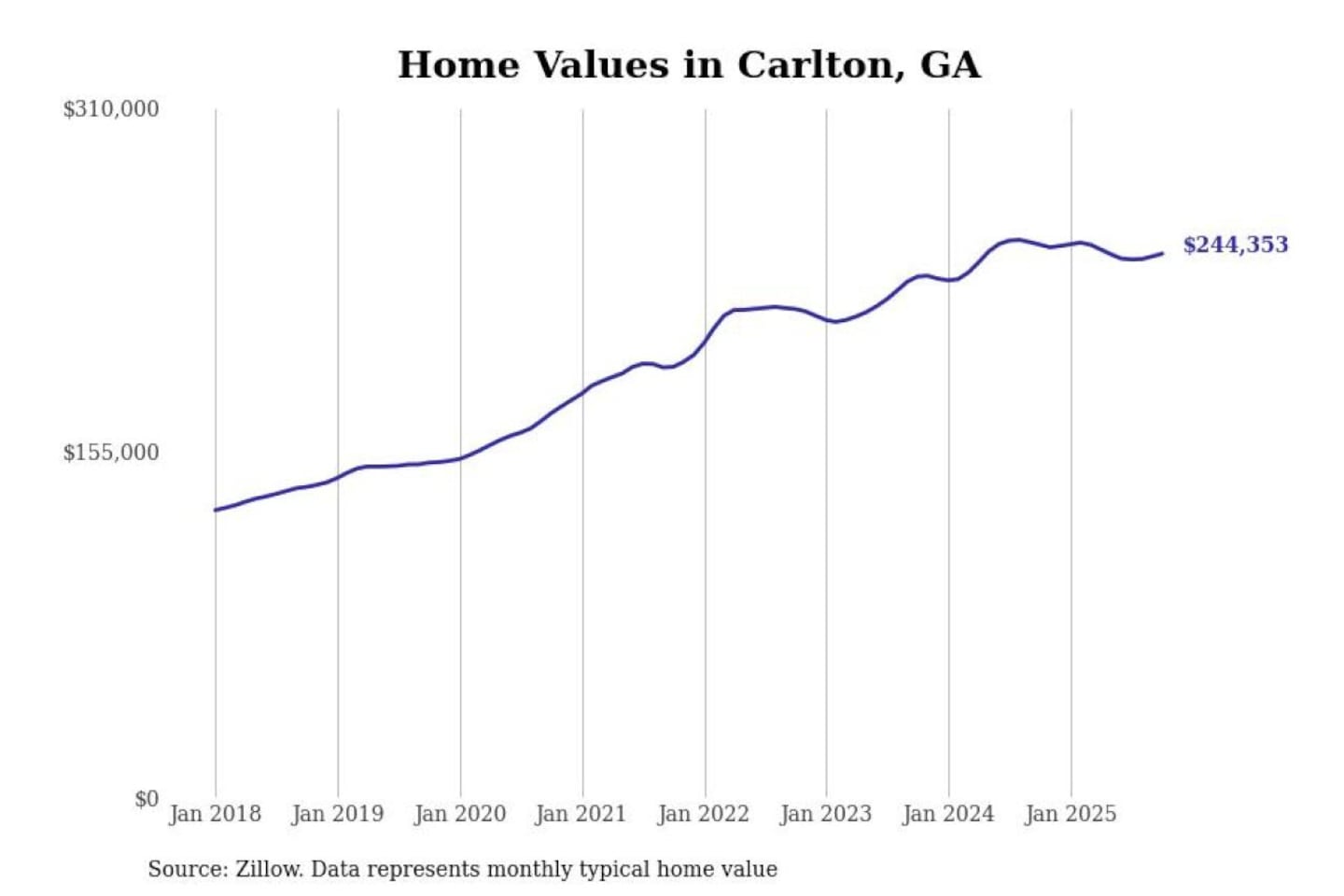 Stacker compiled a list of cities with the most expensive homes in the Athens metro area using data from Zillow. Charts show the monthly typical home value since January 2018. All 17 cities and towns with data available were included in the list.