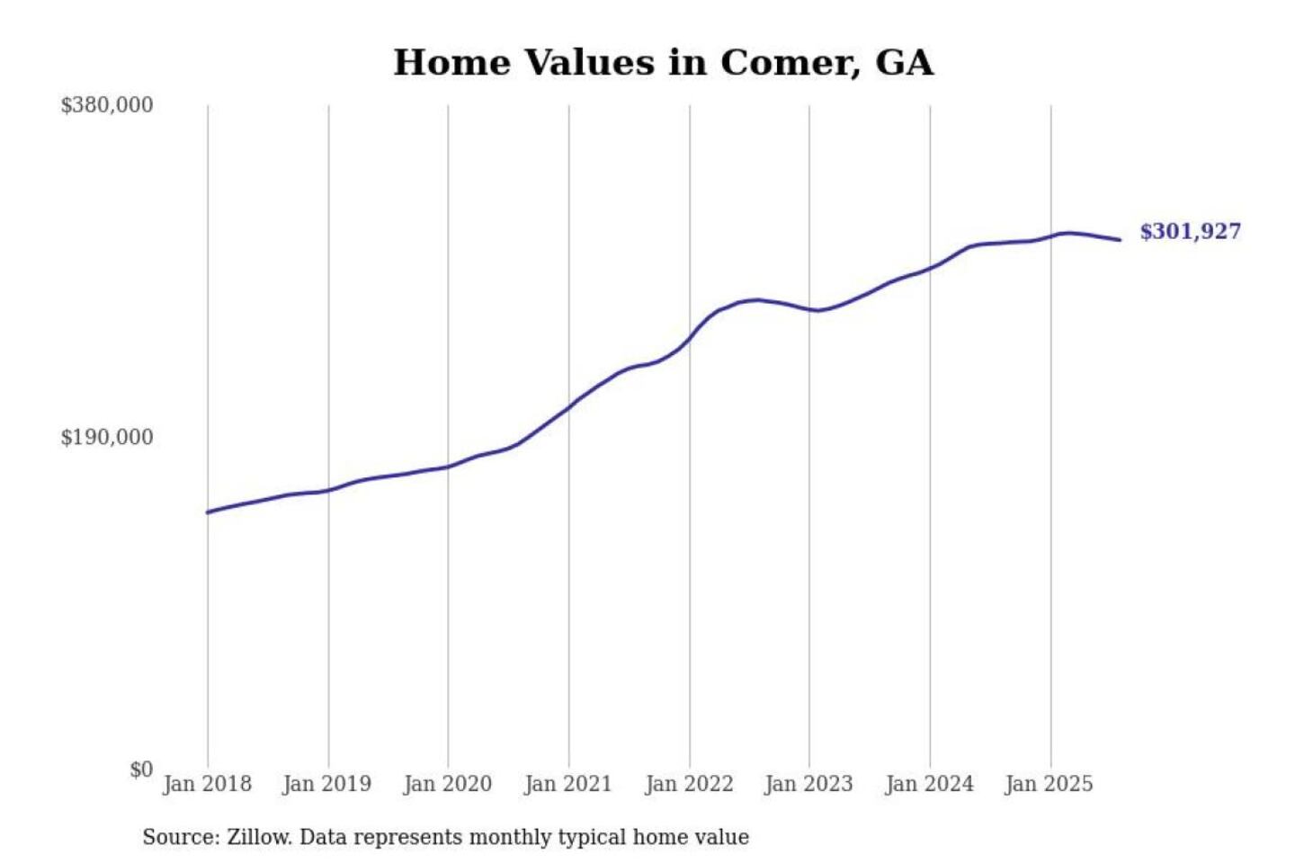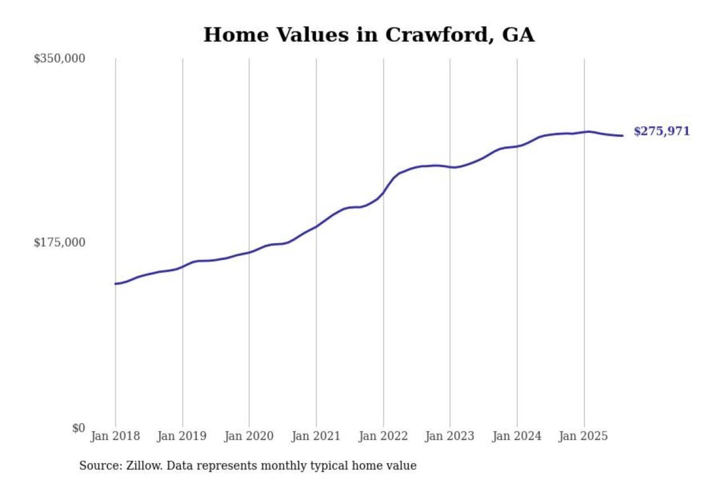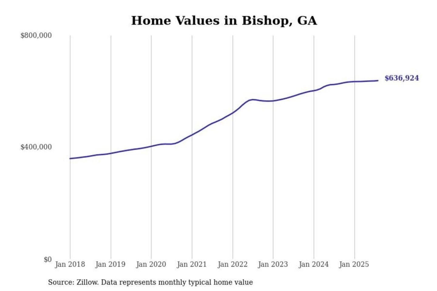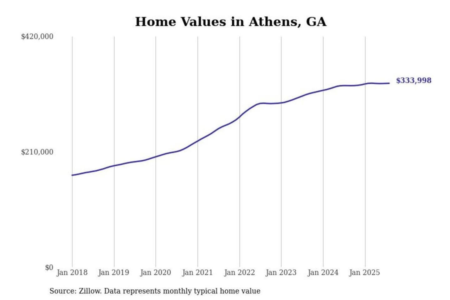 Stacker compiled a list of cities with the most expensive homes in the Athens metro area using data from Zillow. Charts show the monthly typical home value since January 2018. All 17 cities and towns with data available were included in the list.
