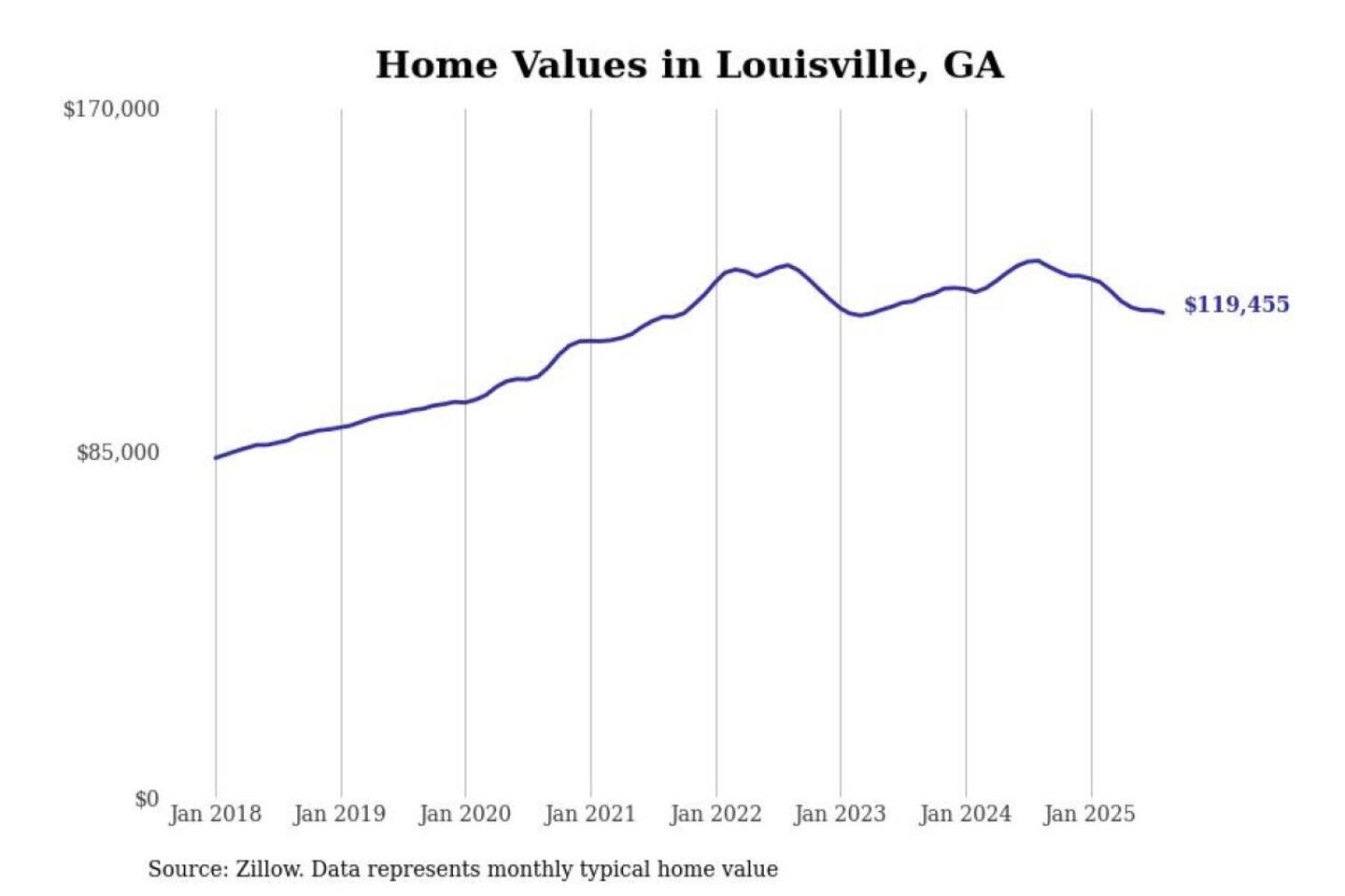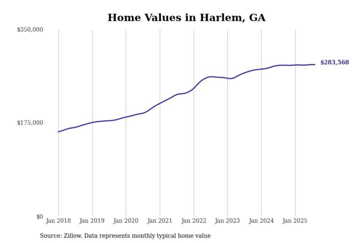 Stacker compiled a list of cities with the most expensive homes in the Augusta metro area using data from Zillow. Charts show the monthly typical home value since January 2018. Data was available for 34 cities and towns.