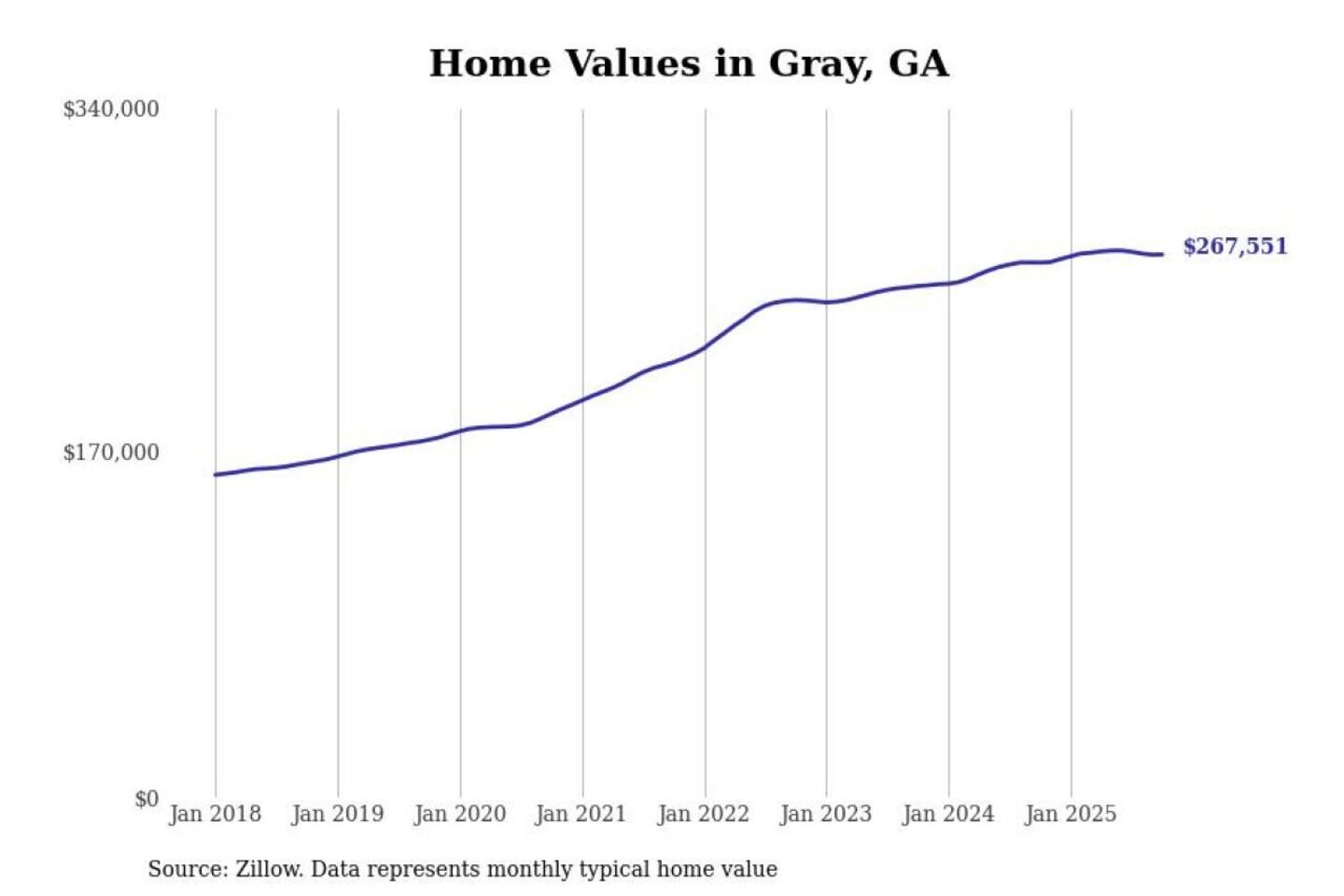 Stacker compiled a list of cities with the most expensive homes in the Macon metro area using data from Zillow. Charts show the monthly typical home value since January 2018. All 14 cities and towns with data available were included in the list.