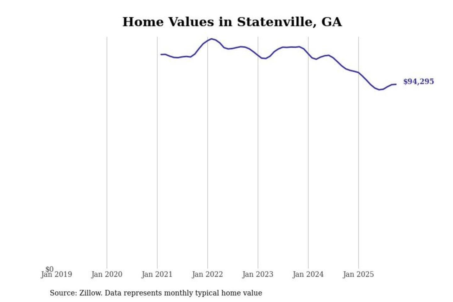 Stacker compiled a list of cities with the most expensive homes in the Valdosta metro area using data from Zillow. Charts show the monthly typical home value since January 2018. All 17 cities and towns with data available were included in the list.