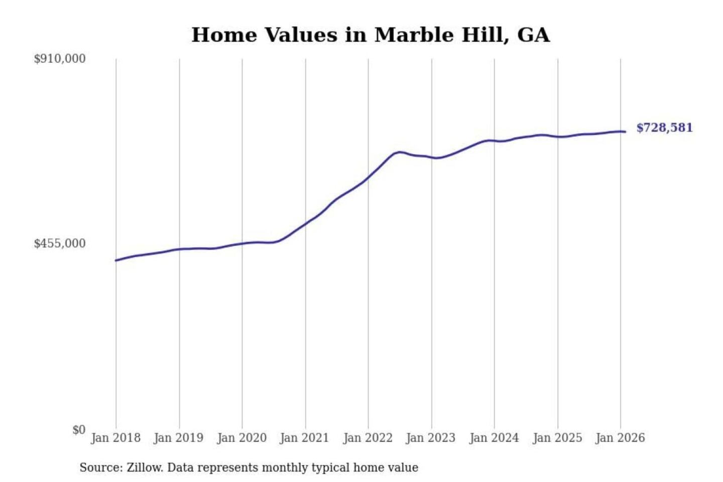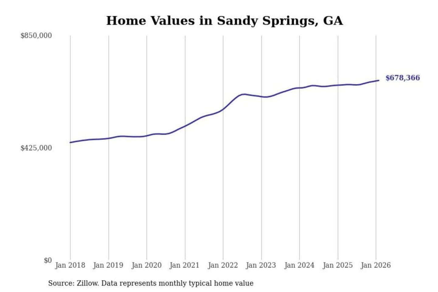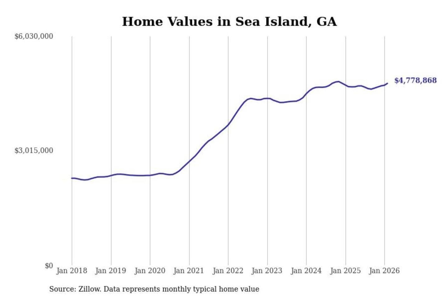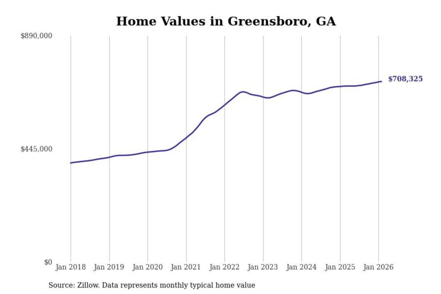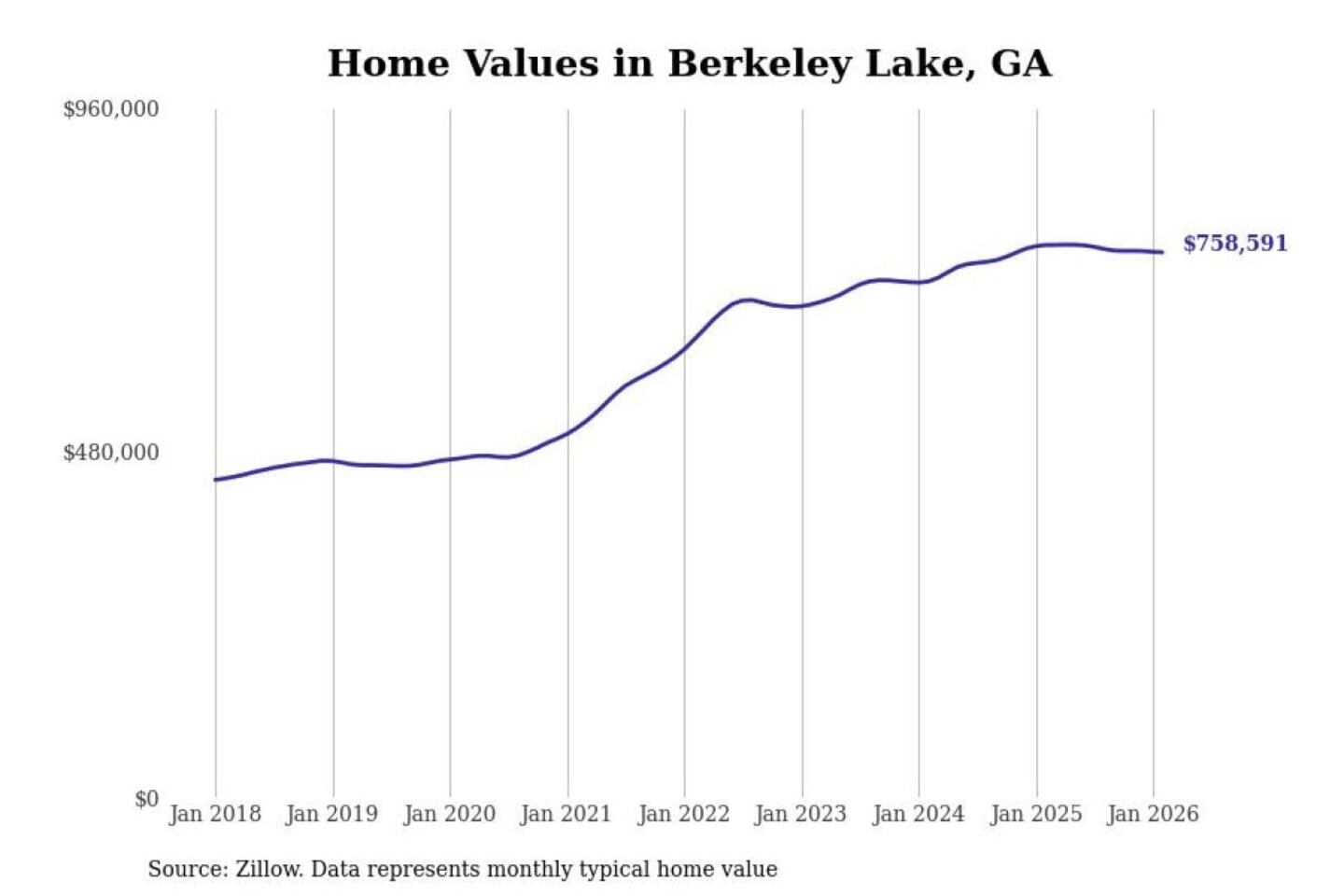 Stacker compiled a list of cities with the most expensive homes in Georgia using data from Zillow. Cities are ranked by the Zillow Home Values Index for all homes as of February 2026. The charts in this story were created automatically using Matplotlib.