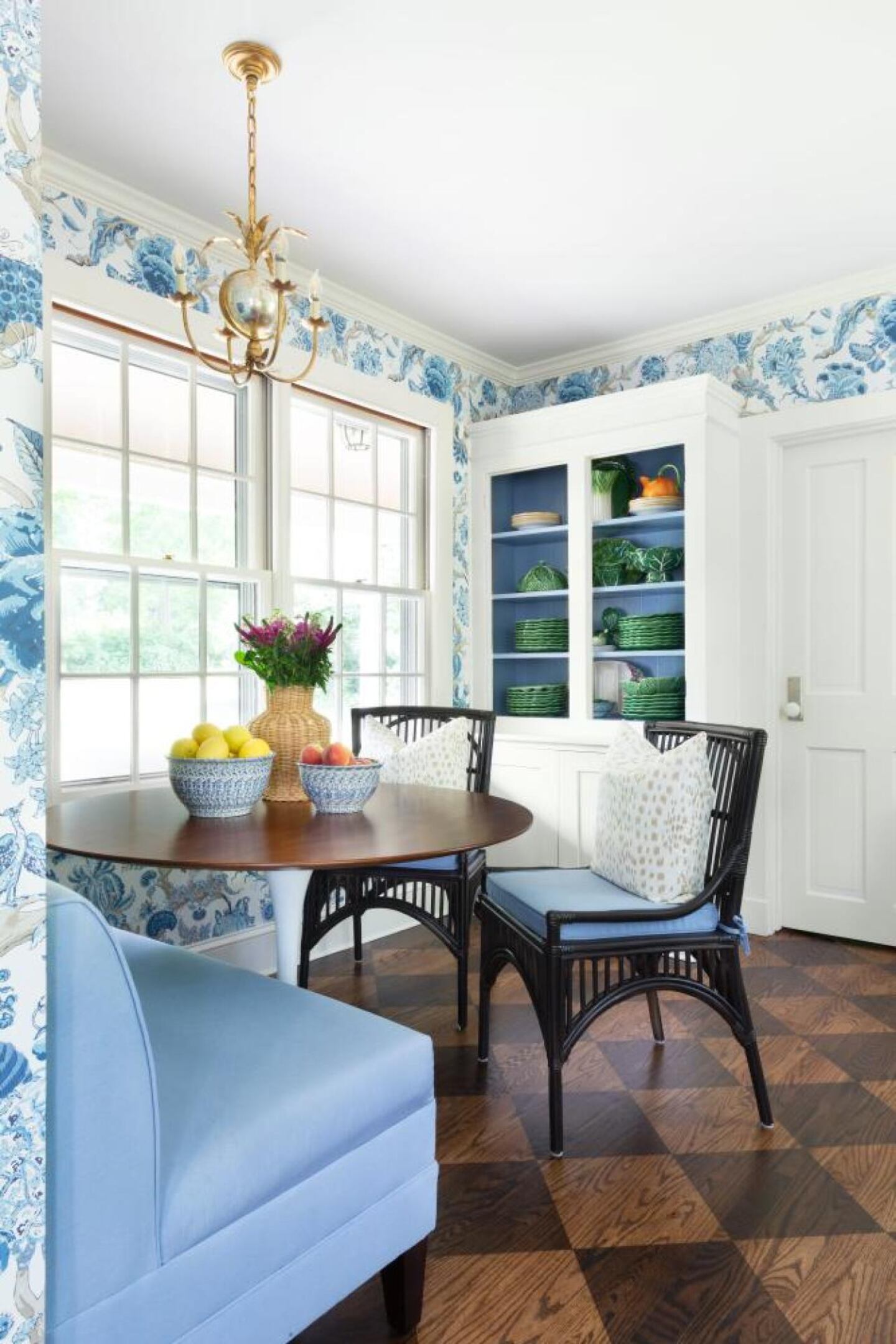 Upon entering, the kitchen receives visitors with natural lighting that lingers not only in the kitchen but throughout the entire house. If there is one thing that characterizes Smith's design, it is the use of blues and unique textures across the board. Small details, such as the relaxing color palette of beautiful animal prints and pops of green and sea blue, envelop the entire space, leaving visitors in a state of calm in an environment that evokes an immersive coastal paradise.