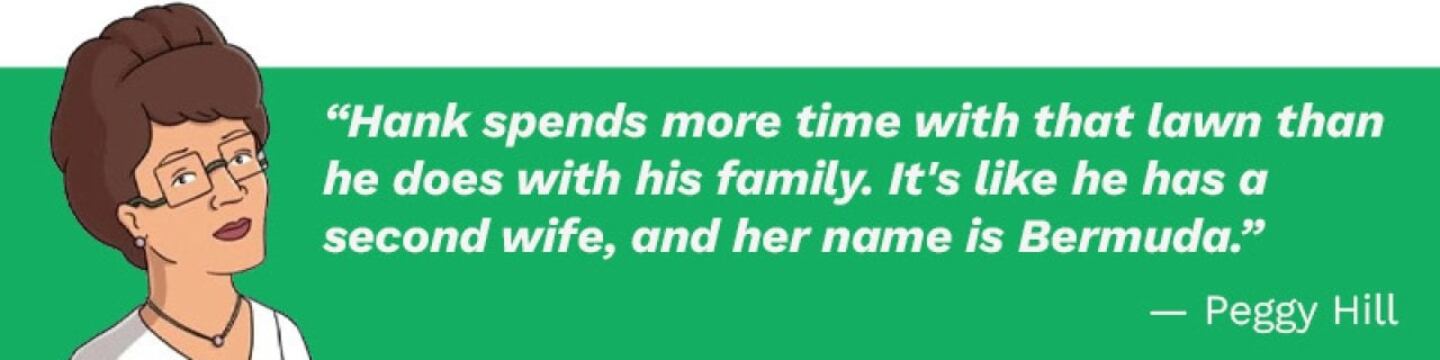 Peggy Hill once said, “Hank spends more time with that lawn than he does with his family. It’s like he has a second wife, and her name is Bermuda.”