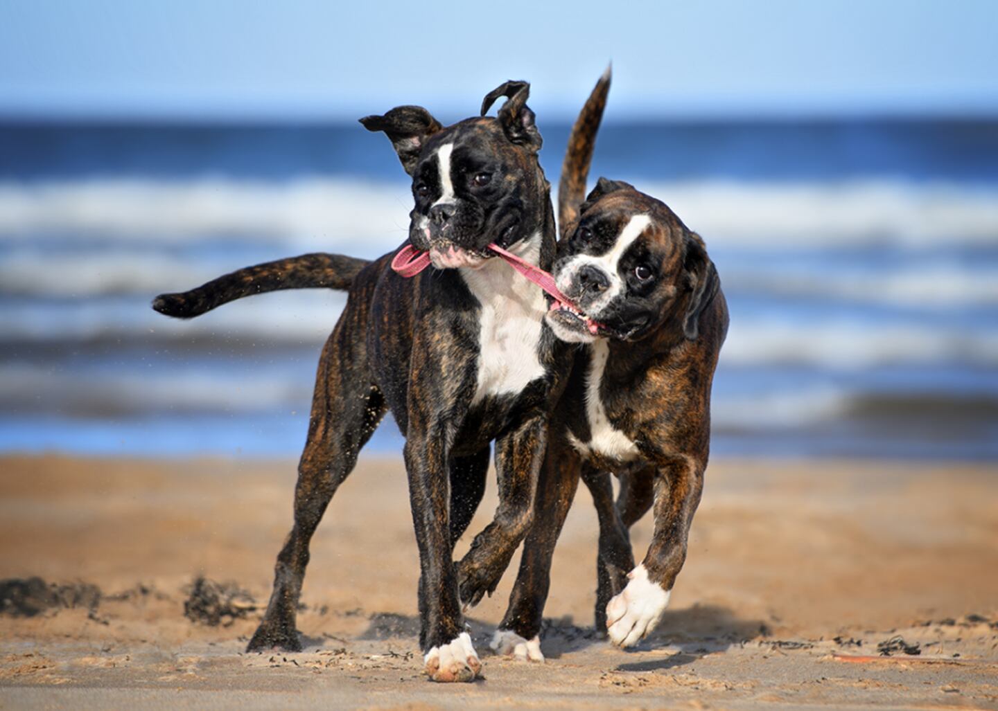 Boxers are probably best known for their wrinkled worrisome faces. Don't let those sad expressions fool you—these dogs are exceptionally playful and full of energy. These qualities have earned boxers the honor of being occasionally called the "Peter Pan of dogs," an especially appropriate title since they have one of the longest puppyhoods in the world and do not reach maturity until they turn 3.
