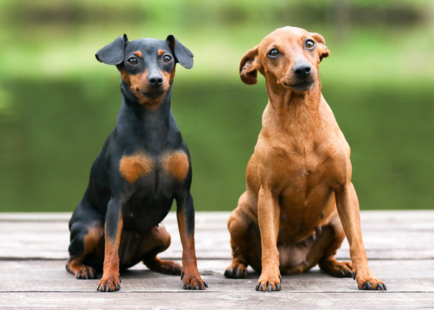 Miniature schnauzers are possibly most recognizable for their bushy beards and eyebrows, features that protect their faces from the vermin they were originally bred to hunt. These dogs still perform pest-control duties and are instinctively curious about mice, gerbils, and even small birds—so they may not be the best dogs for families with small pets.