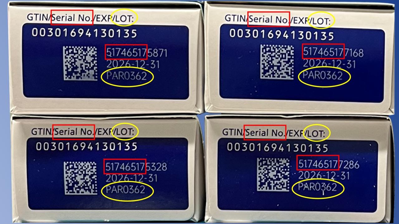 The lot number PAR0362 is real, but when it is with the serial number listed above, it is a counterfeit and should not be used, Novo Nordisk explained.