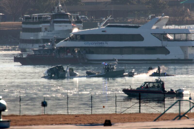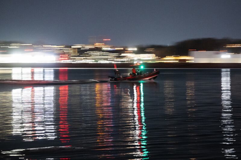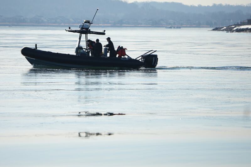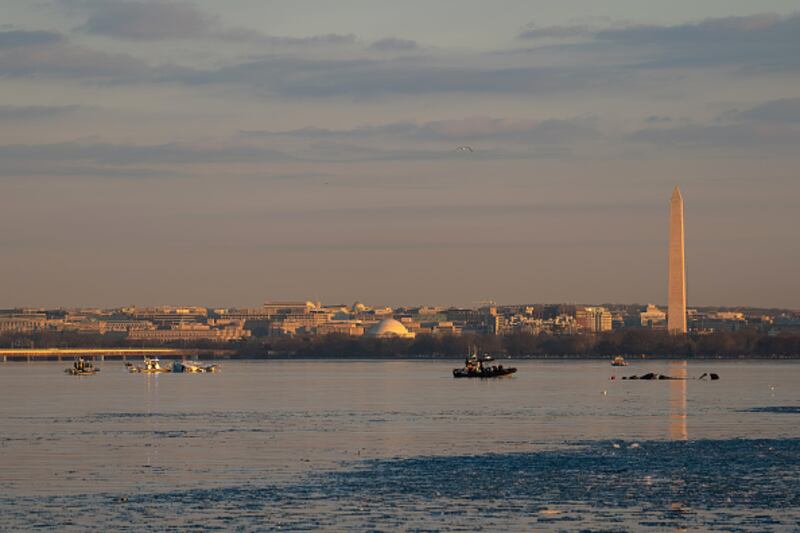 Emergency Crews Respond To Aircraft Crash Near Reagan National Airport ARLINGTON, VIRGINIA - JANUARY 30: Emergency response units conduct search and rescue operation at the crash site of the American Airlines plane on the Potomac River after the plane crashed on approach to Reagan National Airport on January 30, 2025 in Arlington, Virginia. The American Airlines flight from Wichita, Kansas collided with a military helicopter while approaching Ronald Reagan National Airport. Dozens of people are feared to have died in the midair collision. (Photo by Andrew Harnik/Getty Images) (Andrew Harnik/Getty Images)