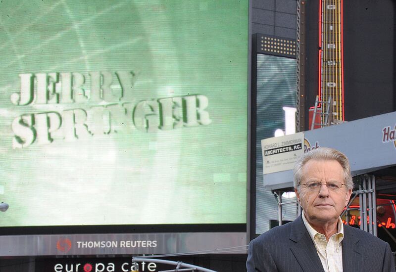 "The Jerry Springer Show" 20th Anniversary Show Taping NEW YORK - OCTOBER 11: TV Host Jerry Springer celebrates the taping of "The Jerry Springer Show" 20th anniversary show at Military Island, Times Square on October 11, 2010 in New York City. (Photo by Michael Loccisano/Getty Images) (Michael Loccisano/Getty Images)