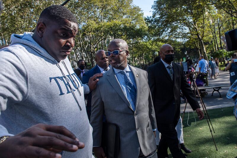 Images: R. Kelly found guilty of racketeering, sex trafficking charges R. Kelly defense attorney Deveraux Cannick, center, speaks to the media after a guilty verdict against R. Kelly at the Brooklyn Federal Courthouse, Monday, Sept. 27, 2021, in New York. (AP Photo/Brittainy Newman)