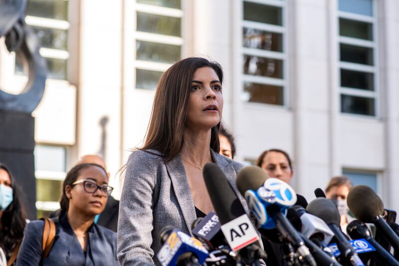 Images: R. Kelly found guilty of racketeering, sex trafficking charges U.S. Attorney Jacquelyn Kasulis gets ready to speak to the press on the guilty verdict of R. Kelly at the Brooklyn Federal Court House on Monday, Sept. 27, 2021, in New York. (AP Photo/Brittainy Newman)