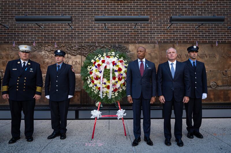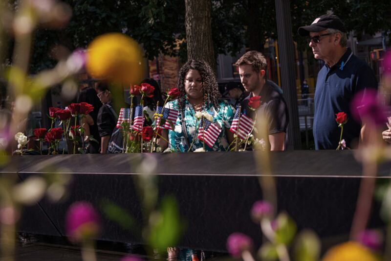 Remembering 9/11 NEW YORK, NEW YORK - SEPTEMBER 11: Flowers are seen on the names of victims of the 9/11 terror attack on the South Tower reflecting pool during the annual 9/11 Commemoration Ceremony at the National 9/11 Memorial and Museum on September 11, 2025 in New York City. Local and national government officials joined family, friends, and first responders as they gathered at Ground Zero honoring the lives of their loved ones on the 24th anniversary of the terror attacks of September 11, 2001, at the World Trade Center. (Photo by Michael M. Santiago/Getty Images) (Michael M. Santiago/Getty Images)